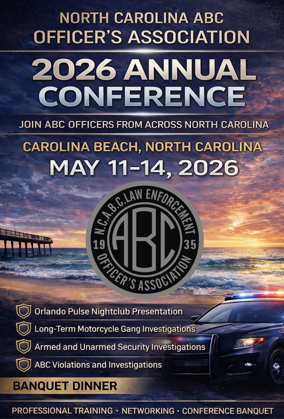 The North Carolina ABC Officers Association (NCABCOA) is a non-profit organization dedicated to supporting ABC Officers in the enforcement of alcohol and drug laws throughout North Carolina. Our mission is to provide ongoing education and training to ABC Officers, enhancing their expertise and effectiveness in alcohol law enforcement. By strengthening their understanding of the crucial role alcohol regulation plays in preventing impaired driving, fraudulent identification, reducing youth access to alcohol, combating crime, and addressing broader community issues, we aim to amplify the positive impact of ABC Officers across the state. In addition to our commitment to alcohol law enforcement, we emphasize the importance of tackling drug laws and the threats posed by illegal substances in our permitted establishments and communities. NCABCOA is dedicated to promoting public safety, protecting communities, and ensuring the responsible enforcement of both alcohol and drug laws across North Carolina.